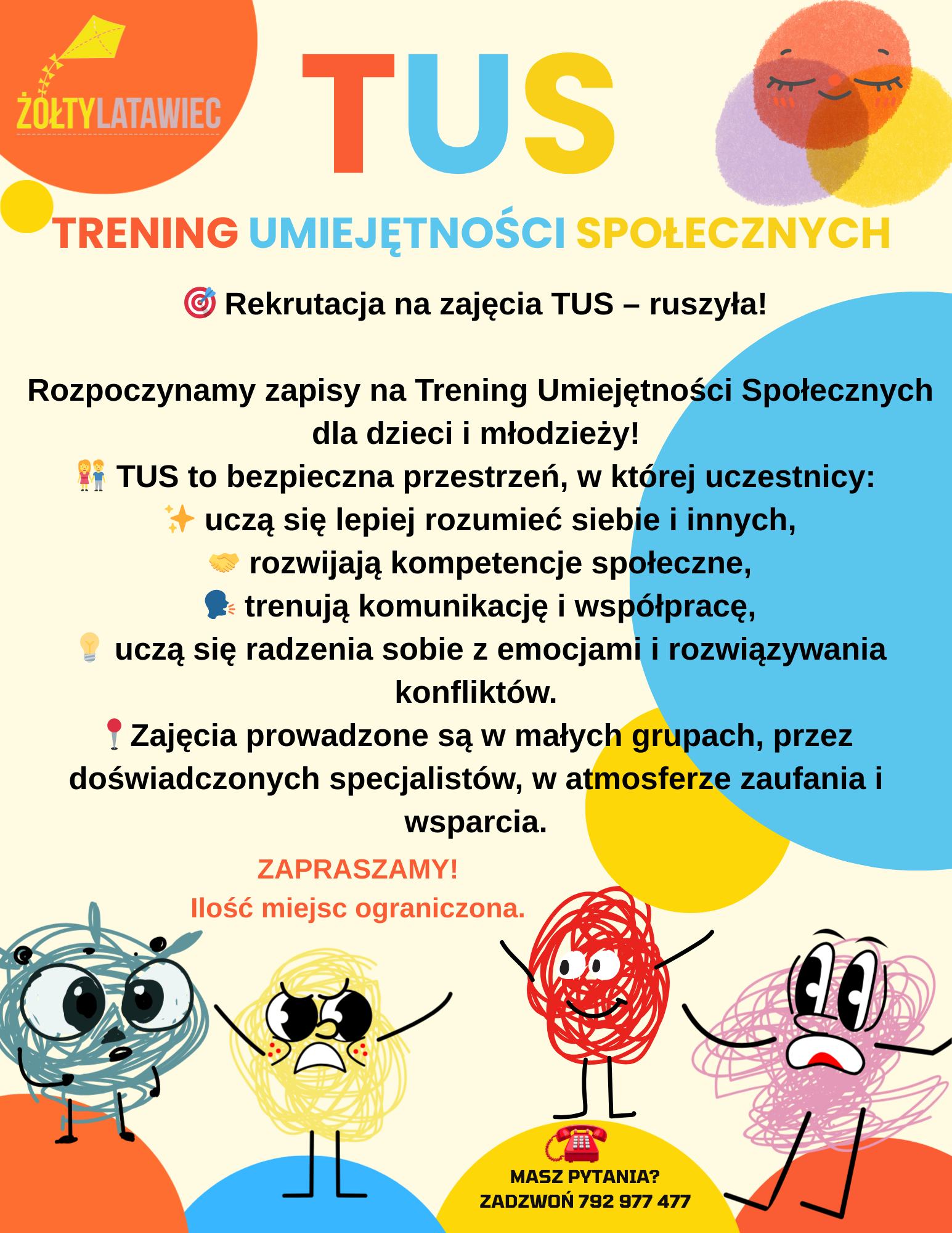 Uwaga! Mamy jeszcze wolne miejsca w naszych grupach na zajęcia TUS! Serdecznie zapraszamy!