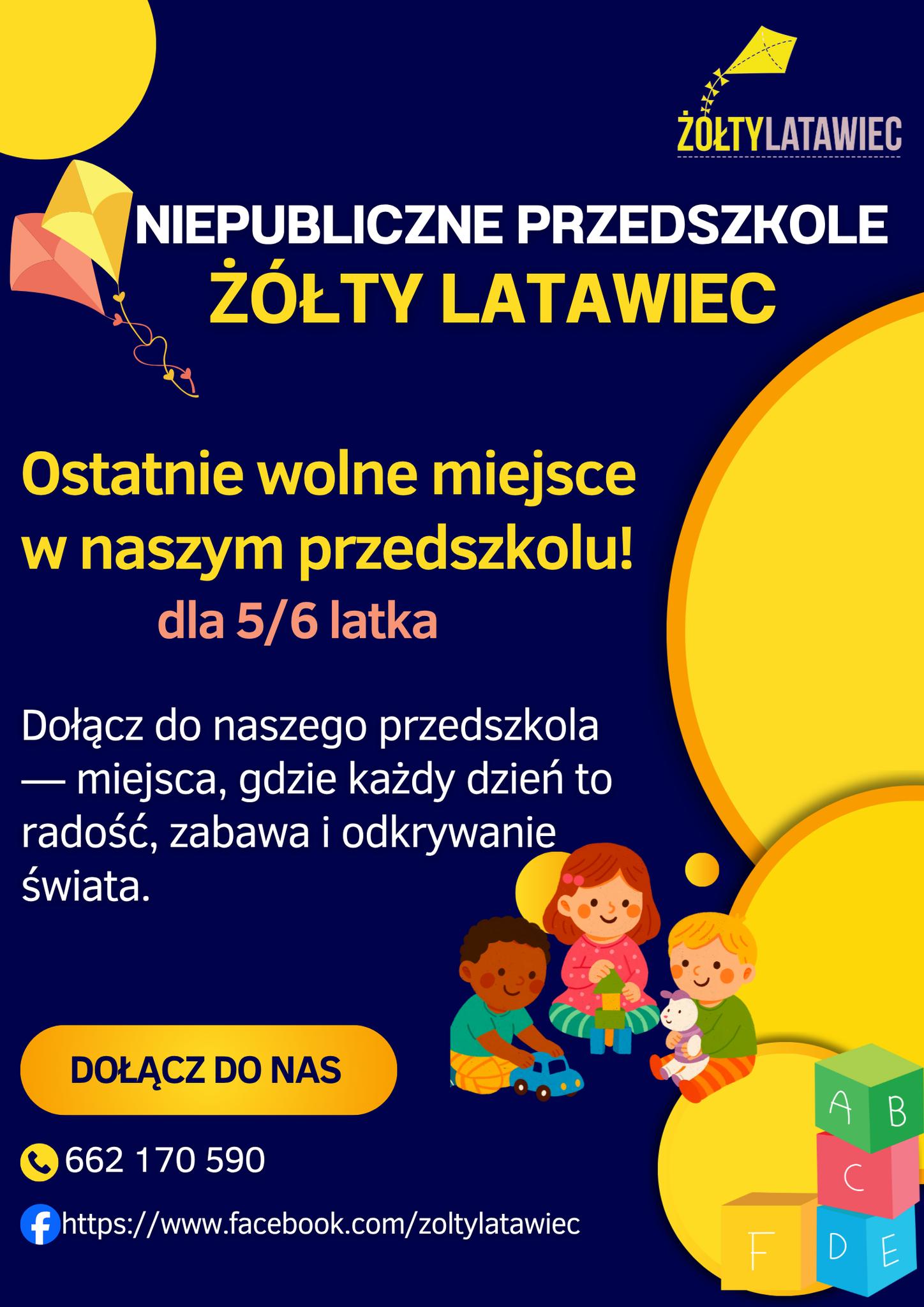 UWAGA!!! Informujemy, że mamy jeszcze 1 wolne miejsce w naszym przedszkolu w grupie 5-6 latków. Zainteresowanych rodziców zapraszamy do kontaktu pod nr tel. 662 170…