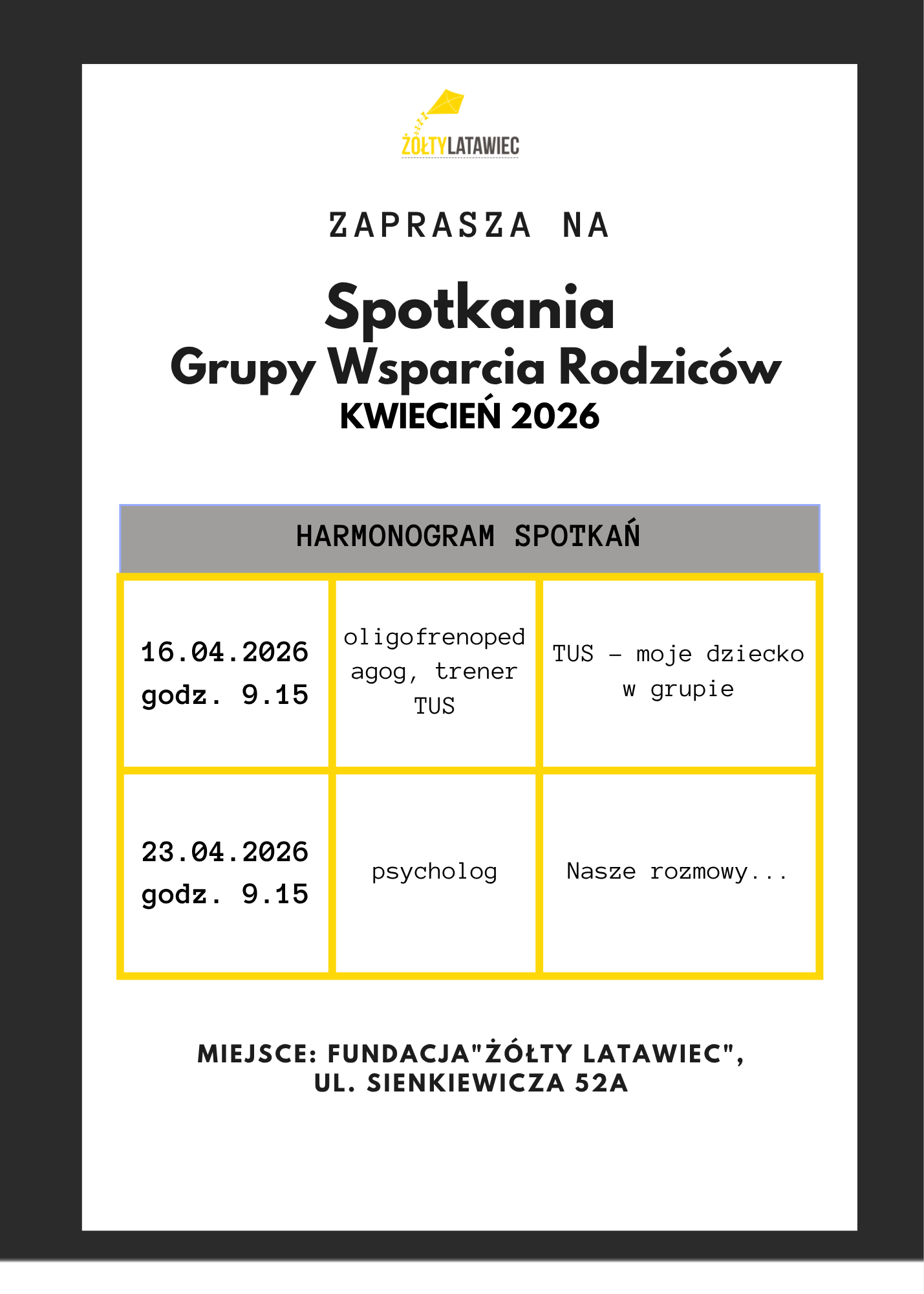 Czytaj więcej...Harmonogram spotkań Grupy Wsparcia Rodziców kwiecień