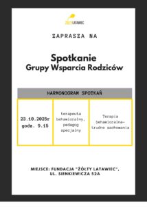 Uwaga! Informujemy, że w dniu 10.11.2025r. (poniedziałek) wszystkie placówki „Żółtego Latawca” będą zamknięte!