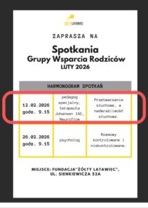 Zapraszamy serdecznie na spotkania Grupy Wsparcia w lutym! W tym miesiącu zaplanowane mamy spotkania dotyczące przetwarzania słuchowego i nadwrażliwości słuchowej, a także poruszymy temat rozmów…