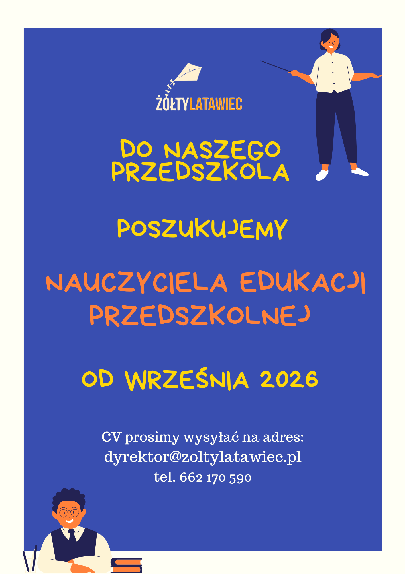 Nasze przedszkole poszukuje nauczycieli edukacji przedszkolnej do pracy z najmłodszymi. Jeśli masz pasję do pracy z dziećmi, jesteś kreatywną i zaangażowaną osobą, a uśmiech dzieci daje Ci satysfakcję – zapraszamy do naszego zespołu!